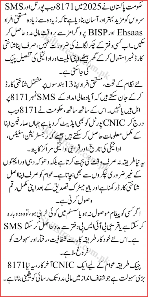 Also Read About : How to Check BISP 8171 Payment Eligibility in 2025 – Easy SMS & Web Portal Guide for Families
