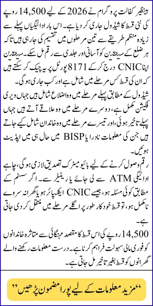 Benazir Kafaalat 2026 Rs 14,500 Installment Schedule and Status Check