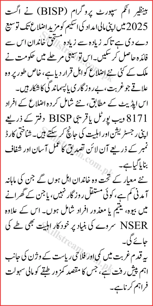 Also Read About : BISP 8171 Portal Update 2025: New Payment Schedule, Updated Eligibility Rules, and CNIC