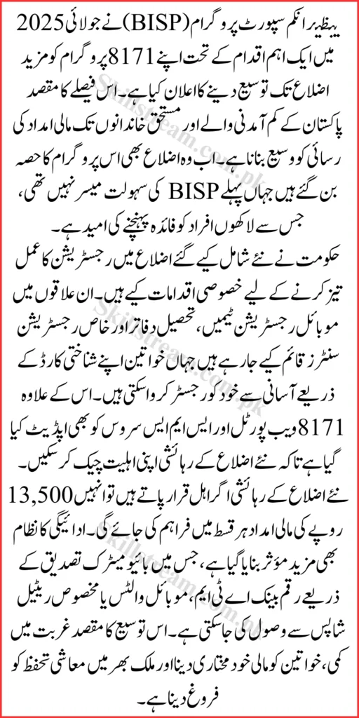 The Benazir Income Support Programme (BISP 8171) has taken another major step toward ensuring nationwide inclusion by expanding the 8171 program into newly added districts as of July 2025. This move is part of the government’s continued commitment to improving access to financial support for underprivileged families, especially in underserved and remote regions.