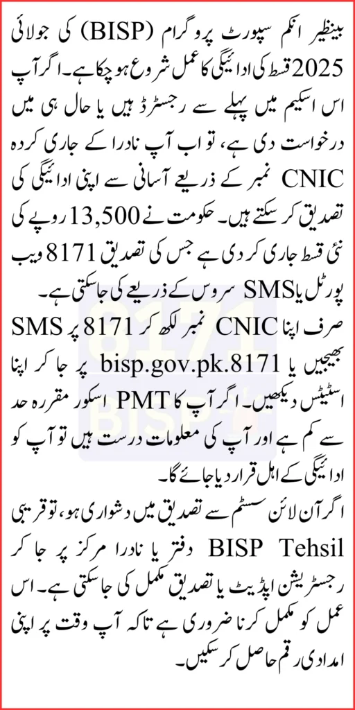 BISP 8171 July 2025 Payment Verification Through NADRA CNIC Complete Online & Offline Guide