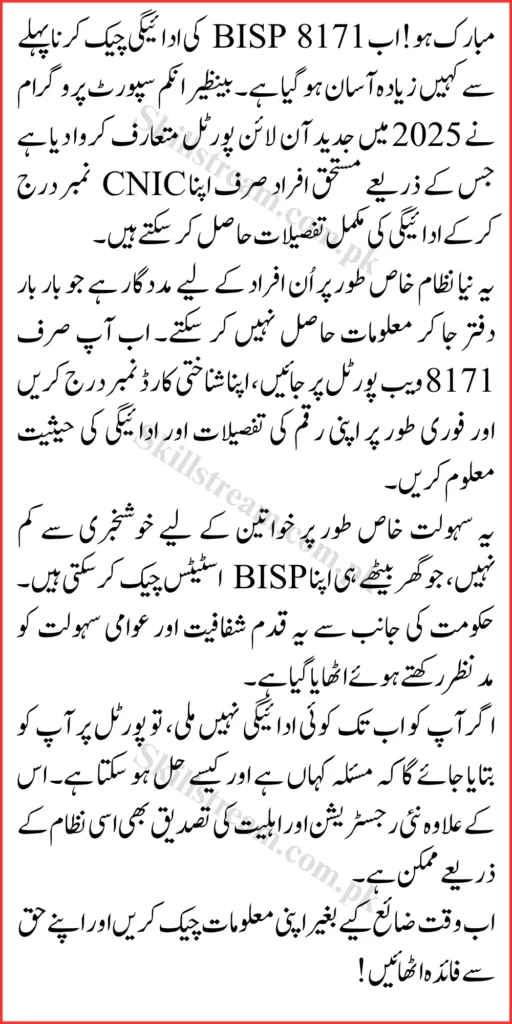 Also Read About : 8171 Web Portal August 2025 Update Check Your BISP Payment Status Online with CNIC