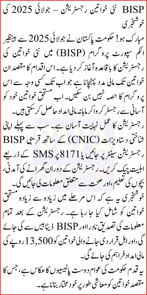 Unlike previous cycles, the July 2025 registration is more organized, leveraging updated technology, door-to-door surveys, and dedicated BISP help centers to ensure no deserving woman is left behind.