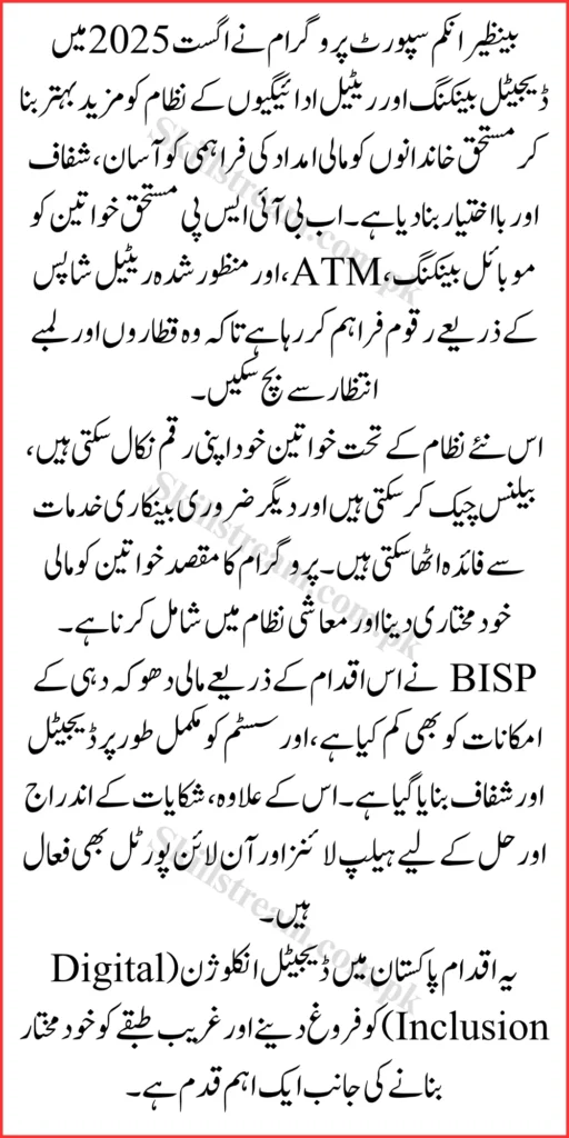 In August 2025, the Benazir Income Support Programme (BISP) has ushered in a transformative era of digital banking and retail-based payments, redefining how millions of families in Pakistan receive vital financial support. This major reform shifts the payment model away from traditional campsites toward biometric-verified retail outlets and digital accounts, ensuring safer, faster, and more dignified delivery. As BISP rolls out this initiative in pilot districts, beneficiaries are invited to experience a system that emphasizes transparency, accessibility, and financial inclusion.